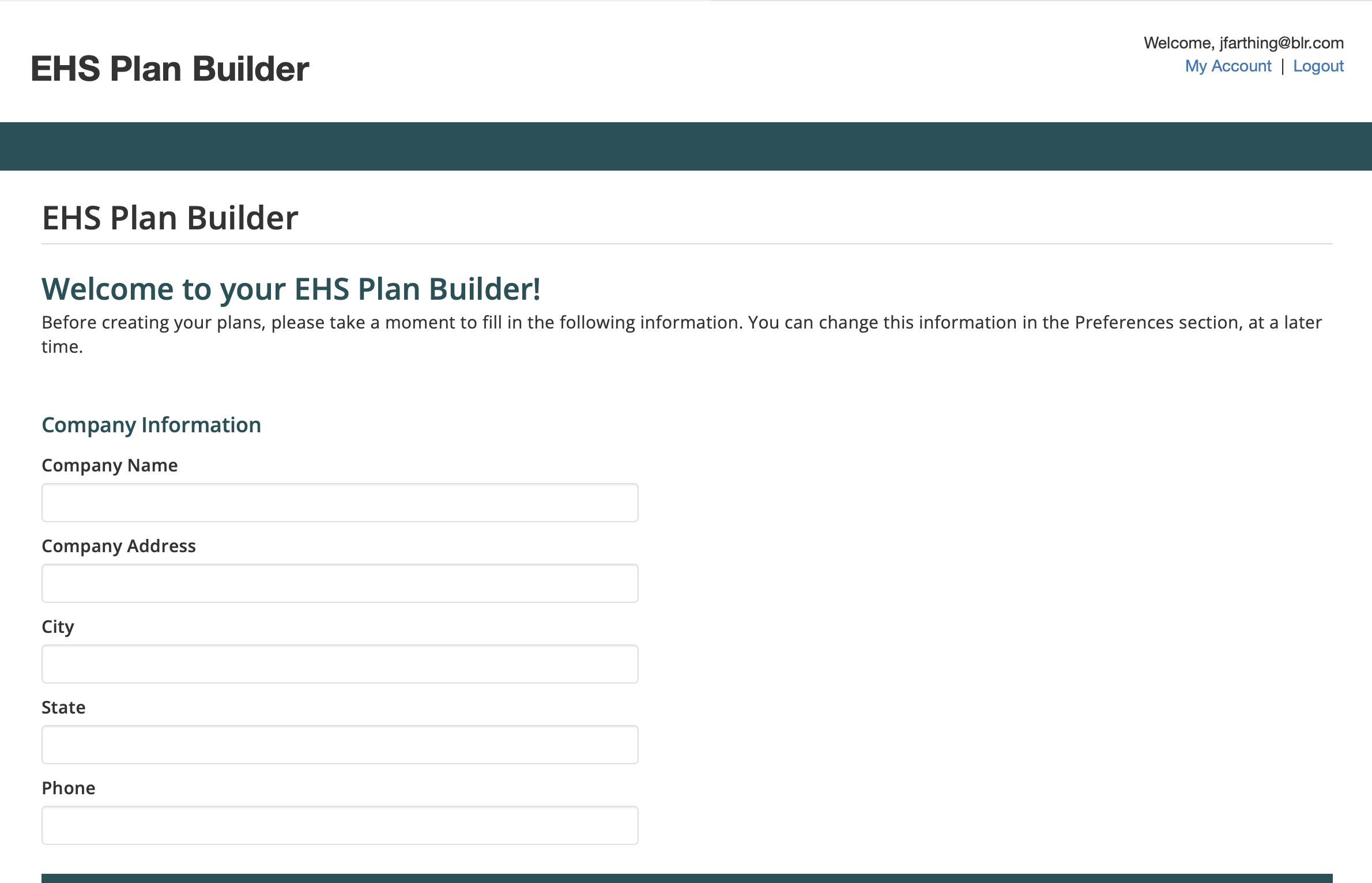 This module may be accessed through your EHS Hero platform via a featured widget or in your Tools section. You may also log in directly at https://ehsplanbuilder.blr.com/#/login.
