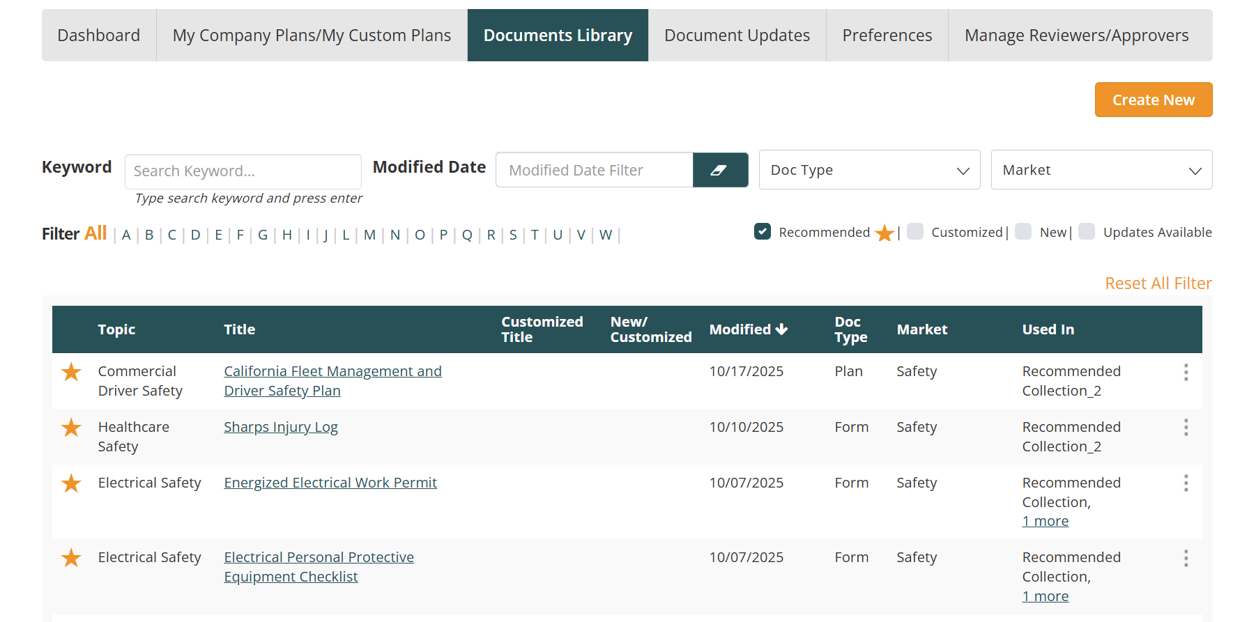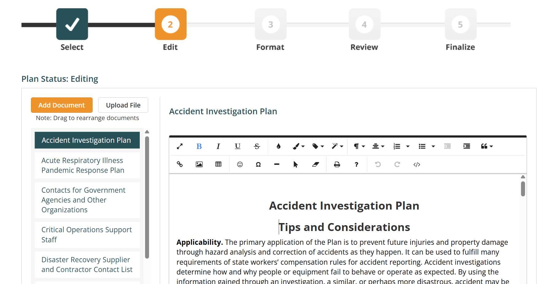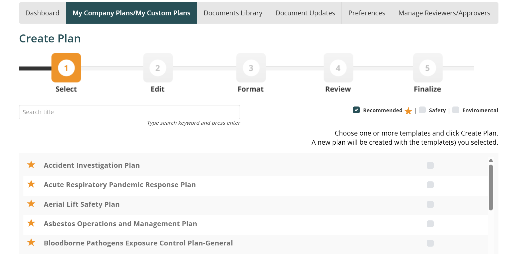 Plan Builder is a workflow tool made specifically for managing and creating EHS plans and programs for your workforce. You can search from a library of curated EHS plans and customize them to meet the needs of your organization. Plans can be revised and reviewed for compliance, as well as copied and distributed easily.